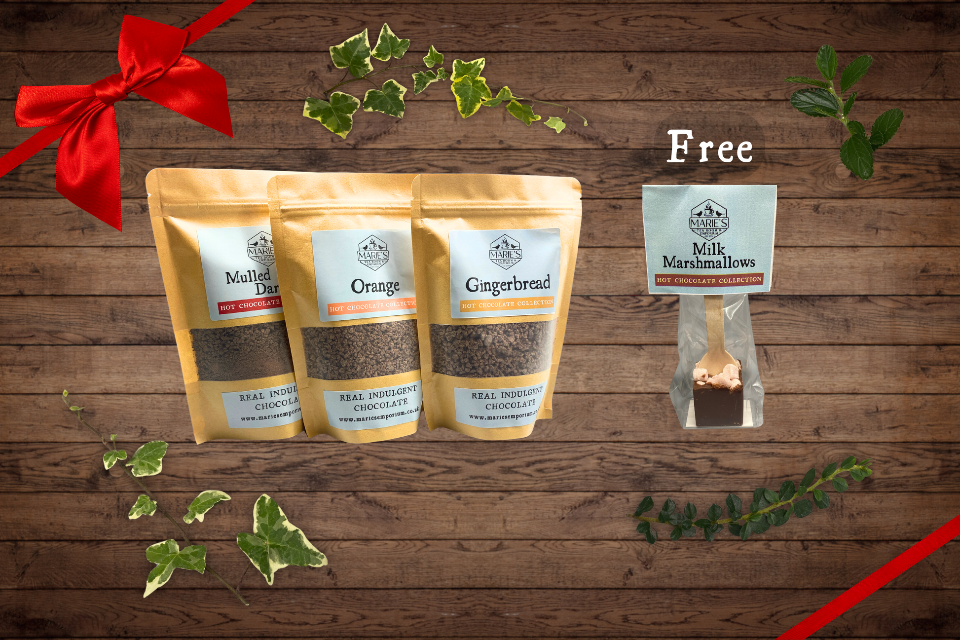 Introducing the Christmas Chocolate Bliss Box, your ultimate indulgence for a luxurious chocolate experience. This beautifully curated box features three exquisite choices of rich hot chocolate blends, each promising a unique and decadent taste sensation. Flavours include Orange, Mulled Wine, and Gingerbread.